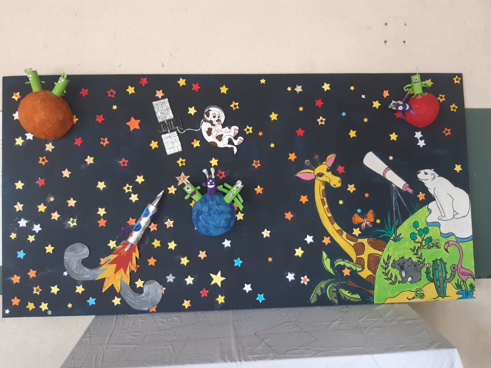 Nous vous créons une fresque unique et personnalisée sur différents supports (papier, tissu, bois, mur...) qui sera ensuite mise en couleurs par les élèves, usagers, visiteurs de votre structure .